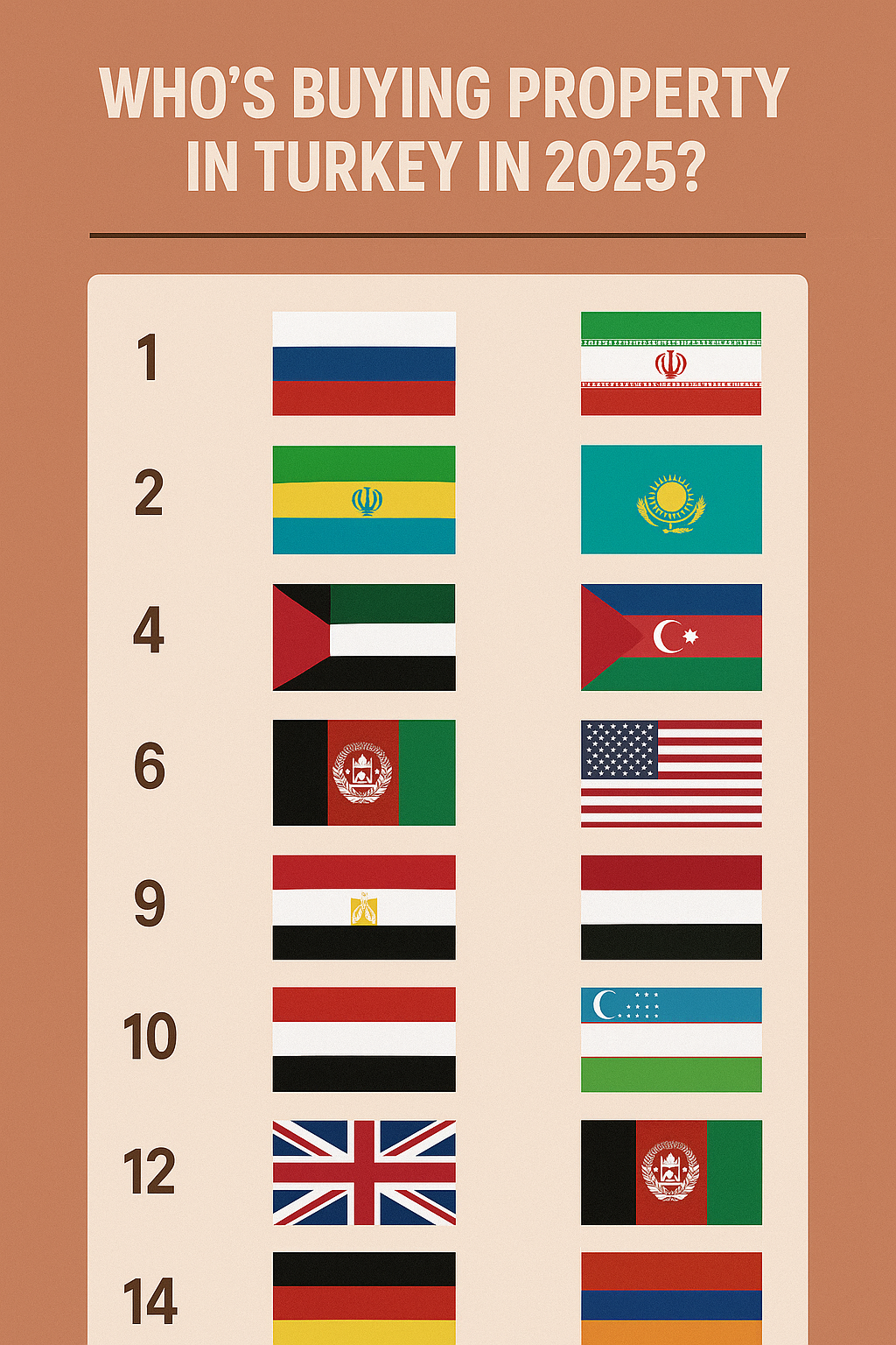 Top 10 Foreign Nationalities in 2025 Turkey’s real estate scene continues to shine in 2025, attracting a wave of international buyers eager to invest, relocate, or secure second homes. With stunning coasts, affordable luxury, and residency perks, Turkey has solidified its place as a global property hotspot. Let’s take a look at the top 10 nationalities investing in Turkish real estate and explore what...