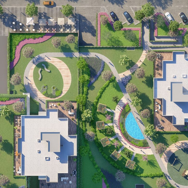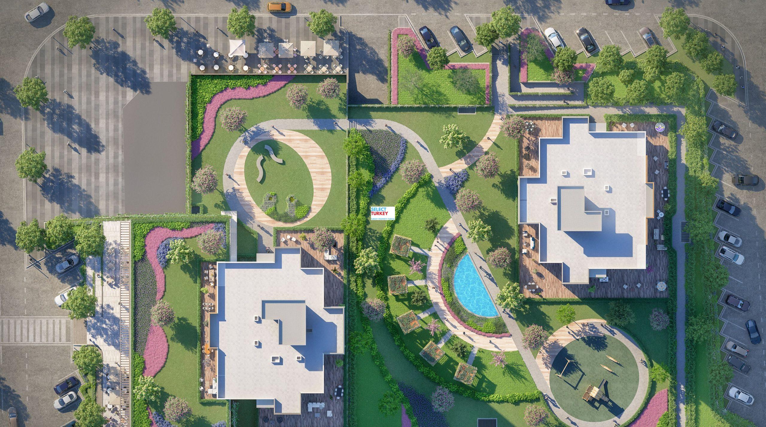 The project offers children’s playgrounds, hiking trails, hammam, sauna, mosque and sports fields, first-class craftsmanship and world- class products within a social area.