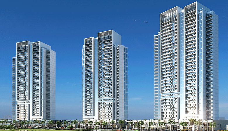 Three residential towers offering studios, along with one and two-bedroom apartments with panoramic views of the DAMAC Hills development and its green outdoor spaces.