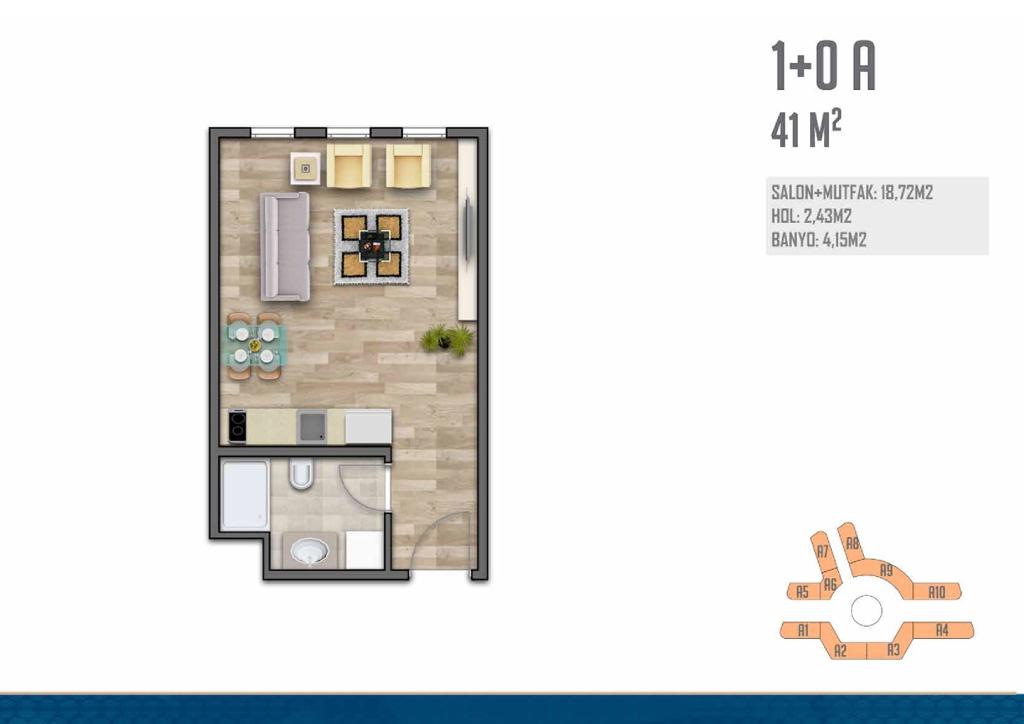 Furthermore it offers 1 + 0, 1 + 1, 2 + 1, 3,5 + 1 and 4,5 + 1 apartments.