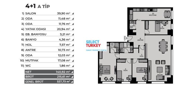 The project includes apartment options starting from 1 + 1 to 4 + 1.