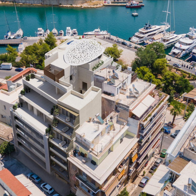 Located within walking distance of numerous cafes, Greek taverns, and restaurants, including the Michelin-starred Varoulko by Lefteris Lazoros, the project provides a pleasant living environment with ample dining options.