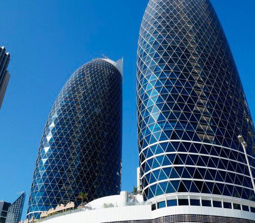 We placed several fast elevators in order to minimize the loss of time in business life.